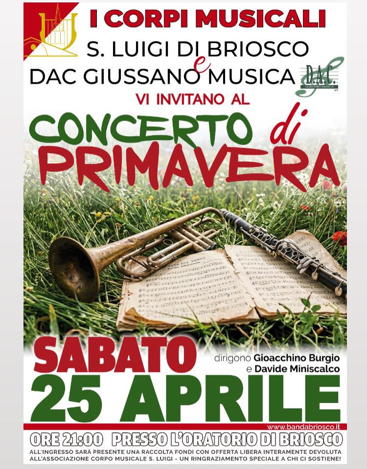 Evento speciale sabato 25 aprile 2026. La D.A.C. Giussano Musica sarà ospite del Corpo Musicale San Luigi di Briosco per una serata all’insegna della musica, che vedrà i corpi musicali esibirsi in due concerti distinti con un gran finale a bande riunite. Non lasciatevi sfuggire questa nuova opportunità. Vi aspettiamo quindi SABATO 25 APRILE, […]